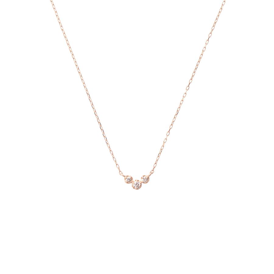 3石のダイヤモンドがきらめくシンプルで上品な印象のネックレス。