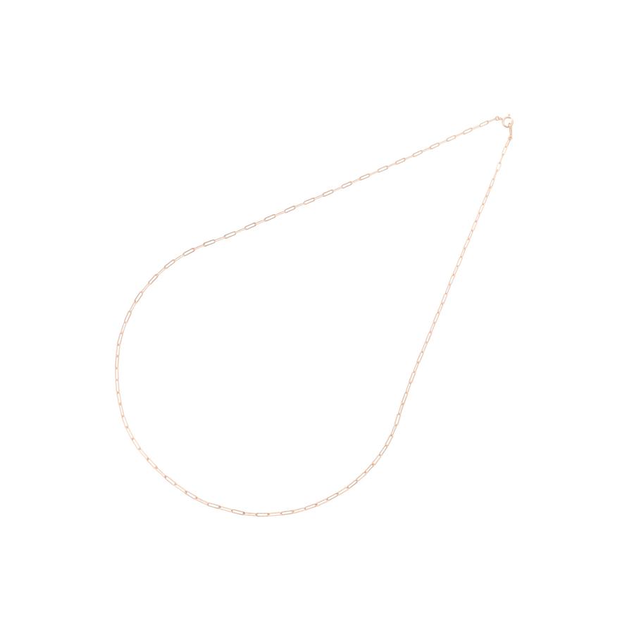 肌なじみのいい優しい色味のピンクゴールドのチェーンネックレス。