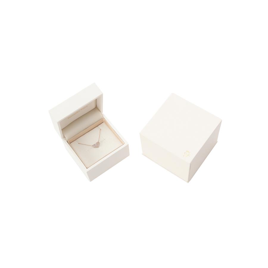 永遠の定番、黄金比のハートモチーフに敷き詰められたダイヤモンドがキラキラと輝きを放ち、華奢な中にも存在感を放つアイテム。