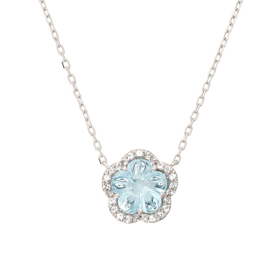 ホワイトゴールドにスカイブルートパーズを組み合わせ、爽やかなカラーリングのネックレス。