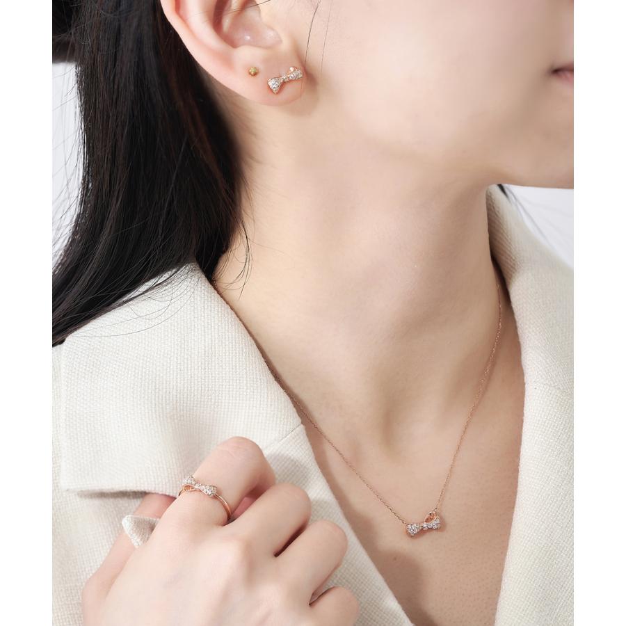 リボン全体に敷き詰められたストーンが、リボンの柔らかな曲線をさらに引き立て、動きのあるデザインが魅力的なジュエリー。
