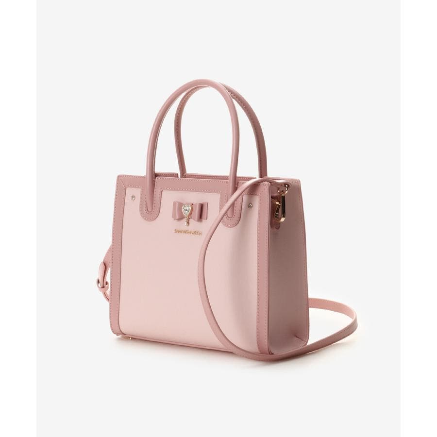 リボンとキラキラのハートがポイントなスクエア型ショルダーバッグ。
