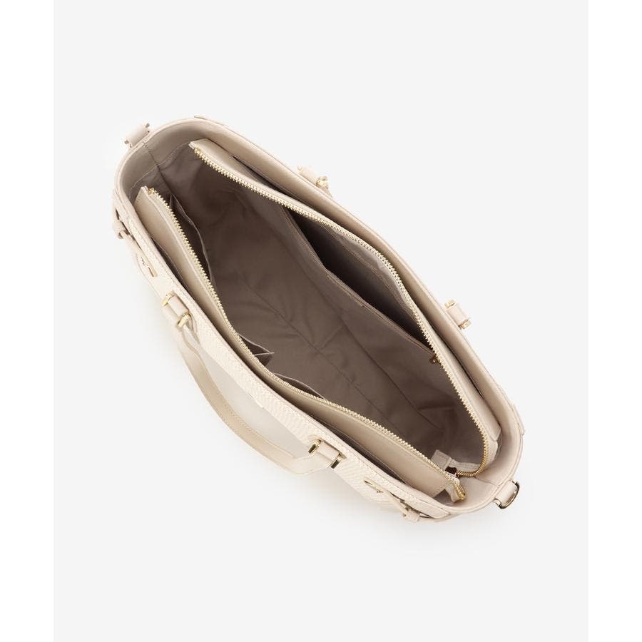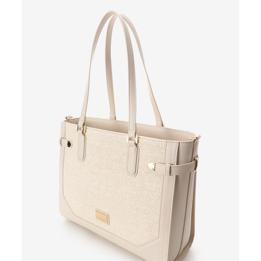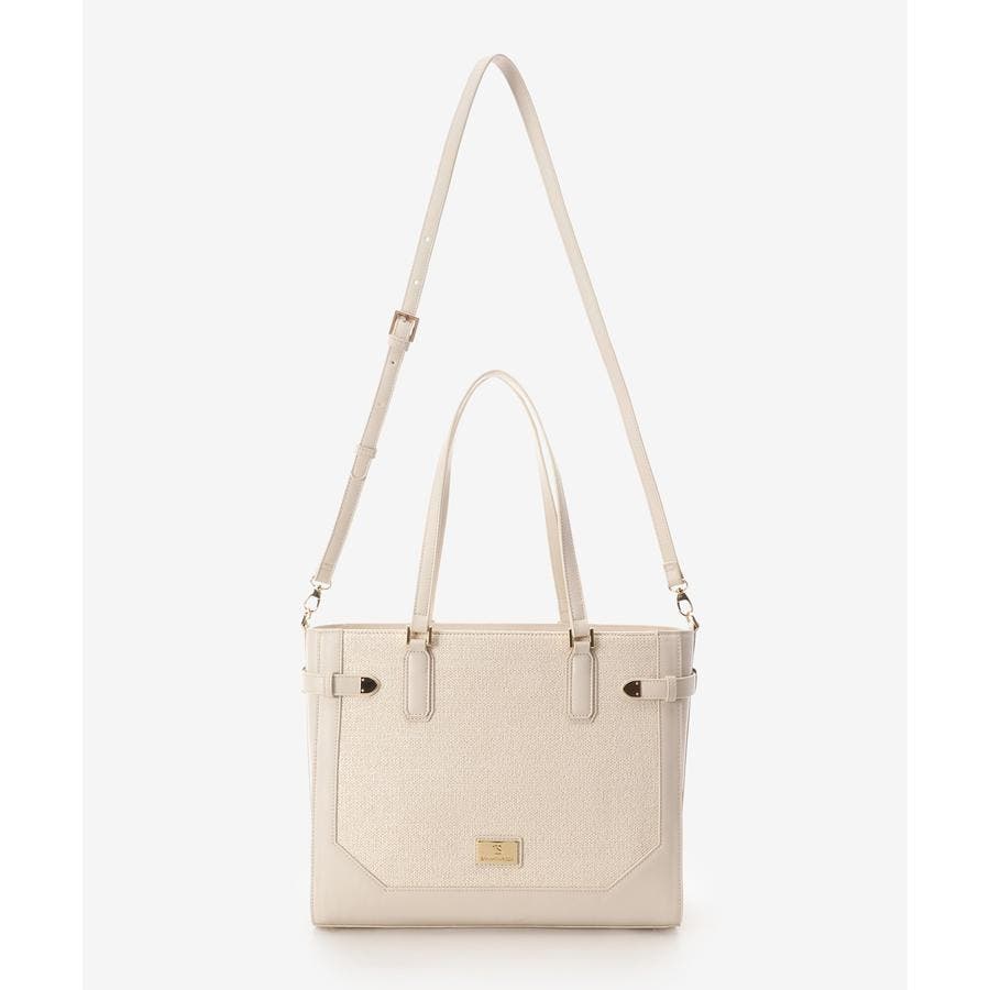 サイドのベルトデザインと年中使用しやすいシンプルなデザインでカジュアルトートバッグ。