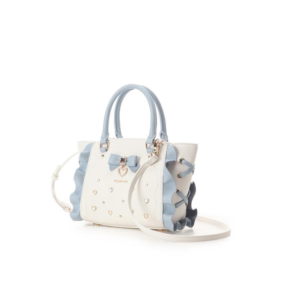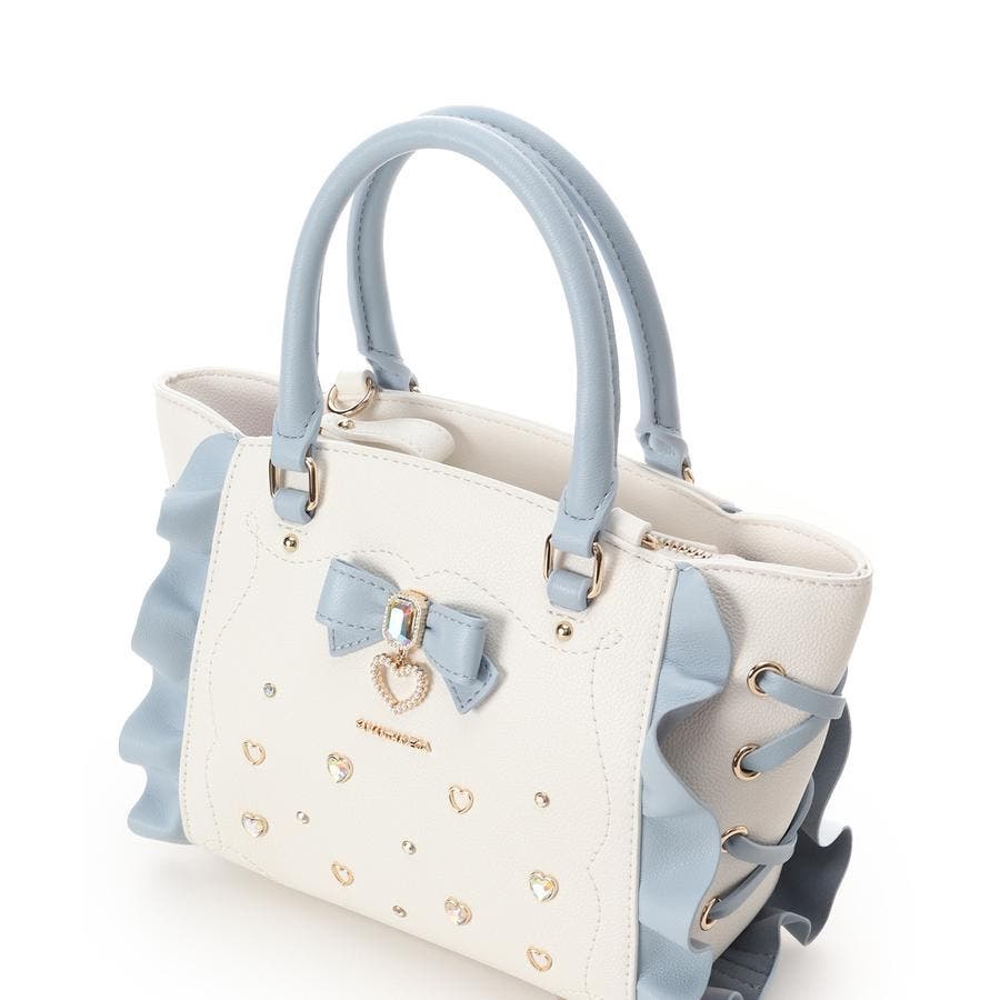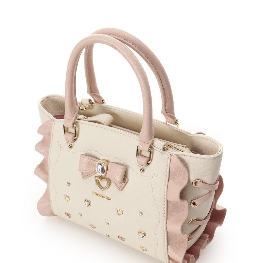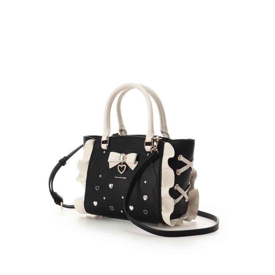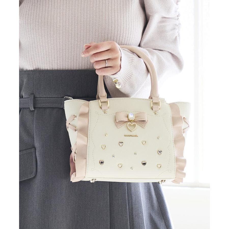 ・フロントに散りばめれらたハートのビジューはバッグによって異なったカラーでこだわりポイント。