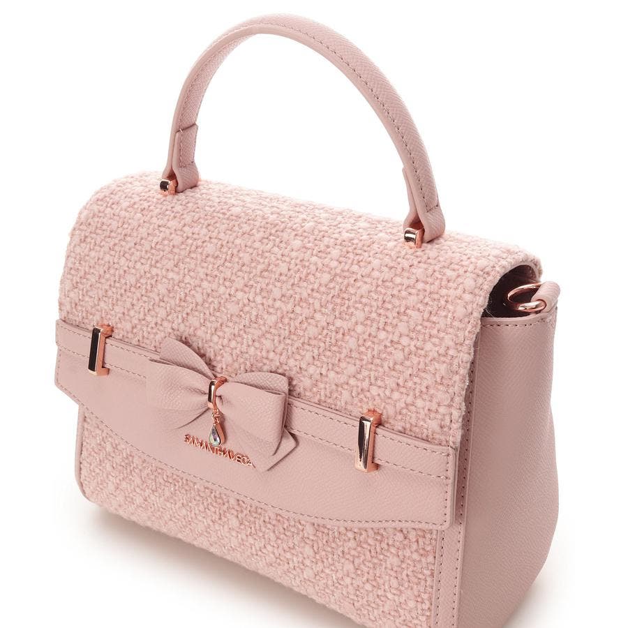 大人気アクセントリボンコレクションよりシーズンムードを高めてくれるツイード素材のコレクションが登場。重なる立体的なリボンが華やかなコレクション。甘いけどしっかり大人ルックでコーディネートも垢抜ける。サマンサベガらしいキュートな配色に加え、スノーホワイトを思わせるホワイト色など色のバリエーションも豊富です。