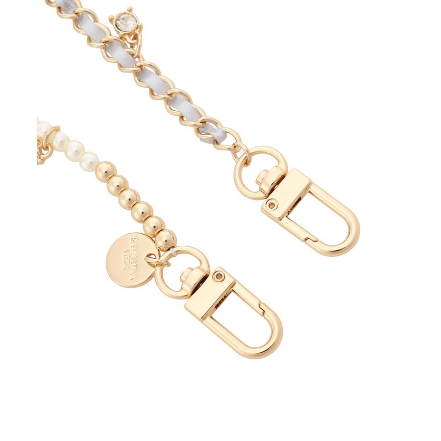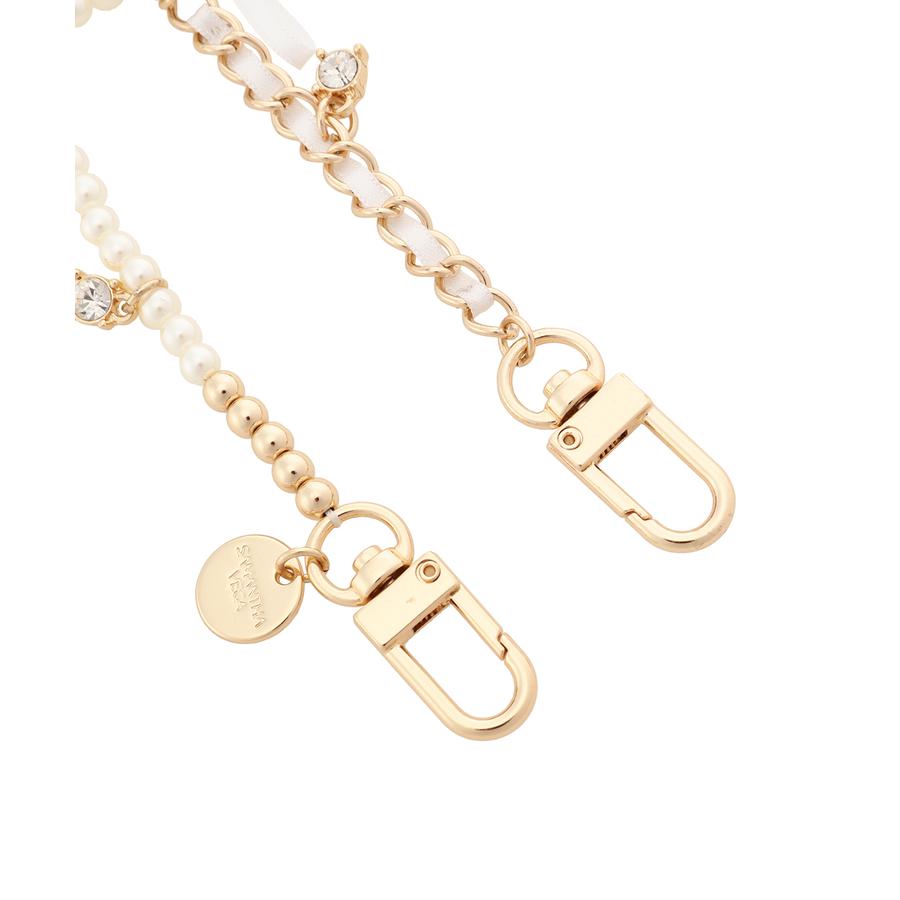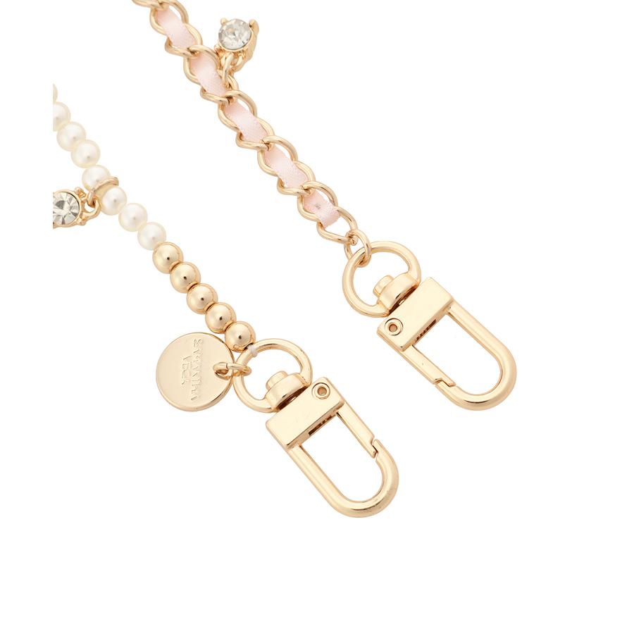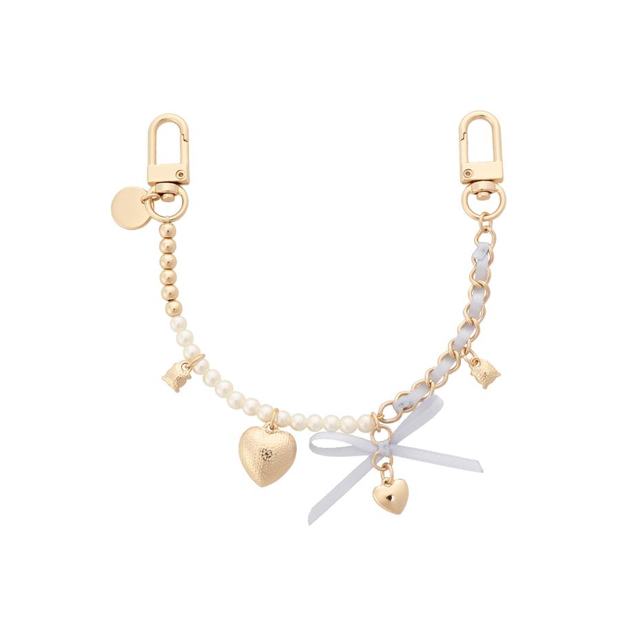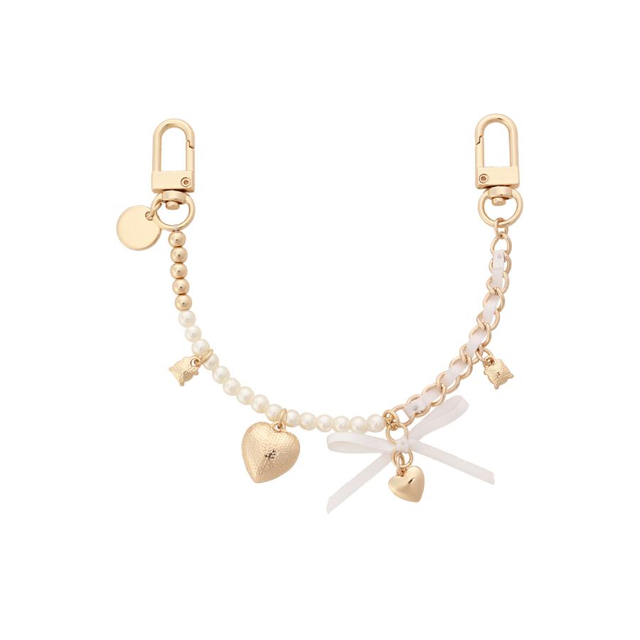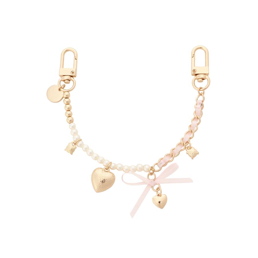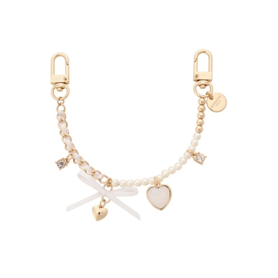 リボンとパール、チェーンなど女の子の可愛いを詰め込んだチャーム。バッグを可愛く彩っていただけます。
