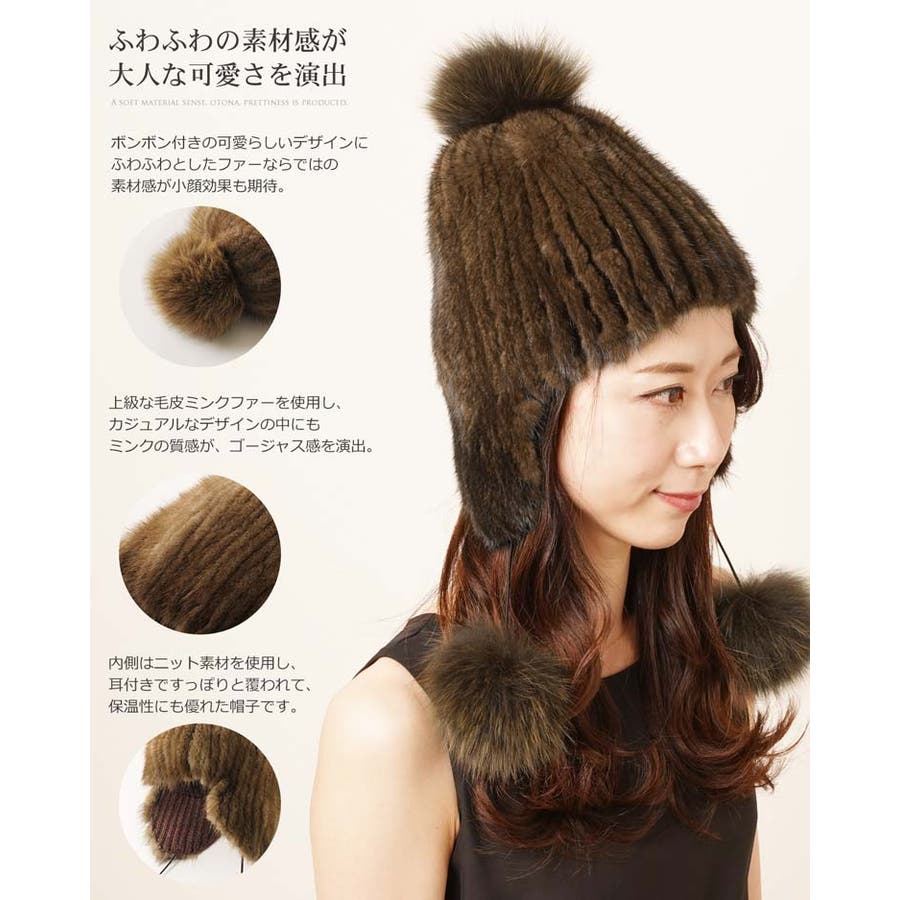 ボンボン付きの可愛らしいデザインにふわふわとしたファーならではの素材感が小顔効果も期待。