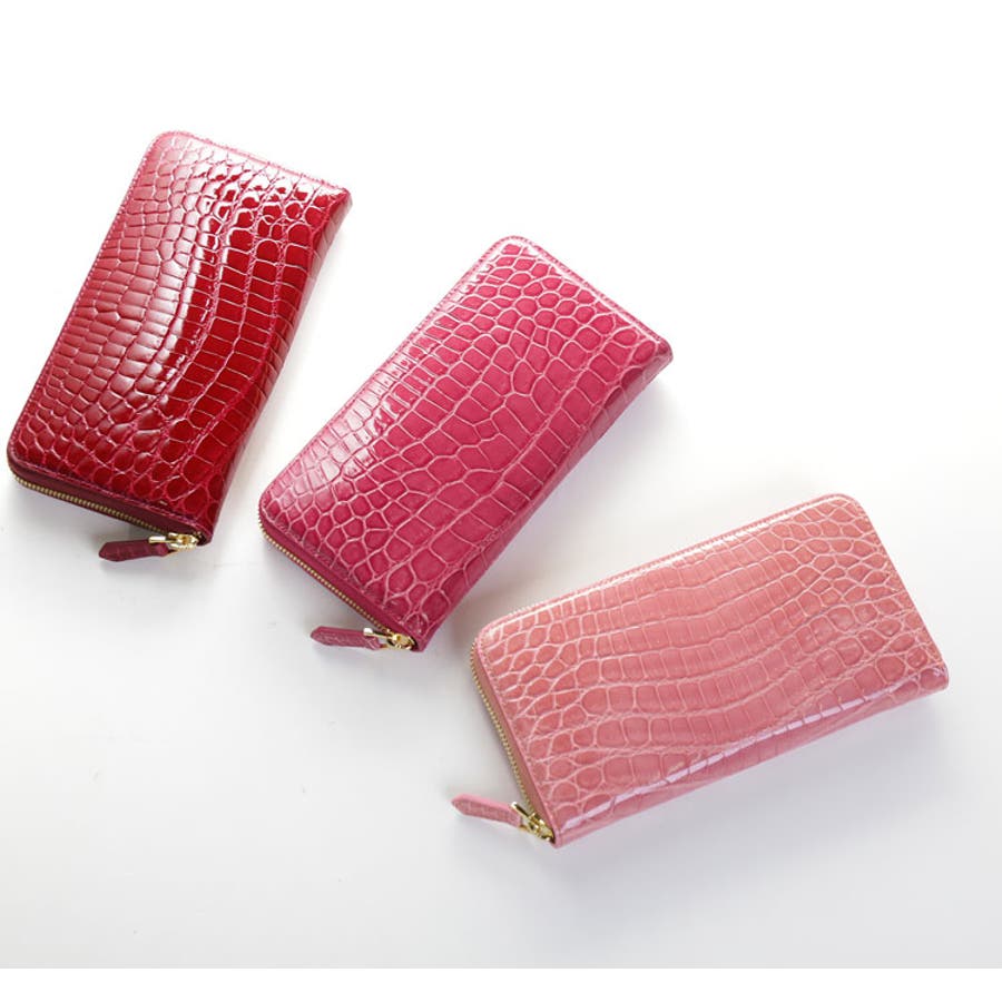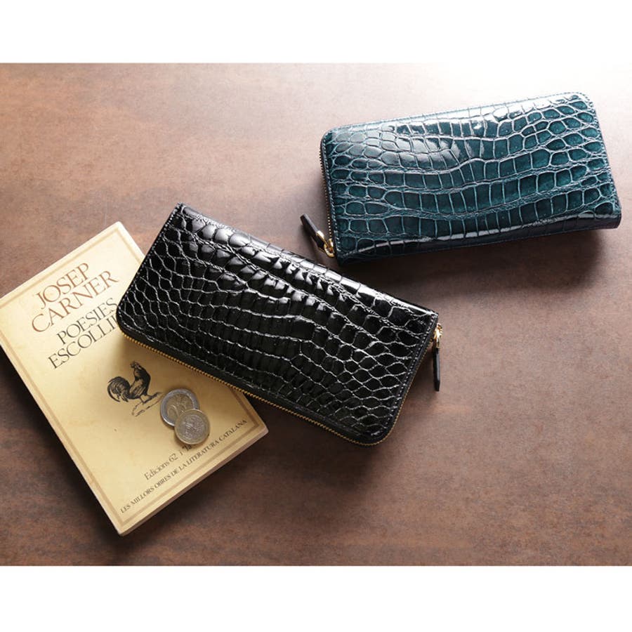 光り輝くシャイニングクロコダイルのラウンドファスナー長財布。