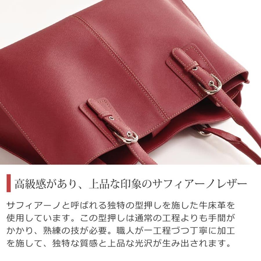 上品な印象を与えてくれる牛床革[サフィアーノレザー]を使用したトートバッグです。