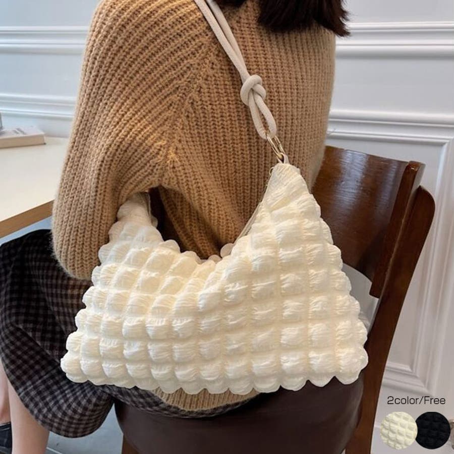 ポコポコとした生地感が可愛く、優しい印象にしてくれるアイテム。