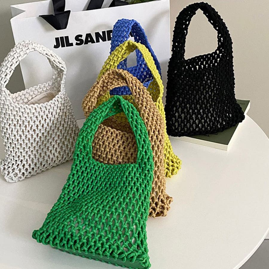 編みニットトートバッグ レディース 夏 収納ポケットあり リゾート ビーチ ミニバッグ 通勤通学 軽量 bach0541