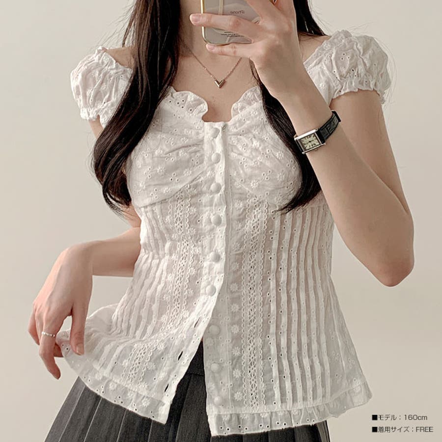 2wayパンチング入りブラウス レディース 半袖 レースブラウス 可愛い バレコア オフショルダー レディース バレエコア 春夏 肩出し レディース おしゃれ カジュアル トップス パンチング入 blcs3234