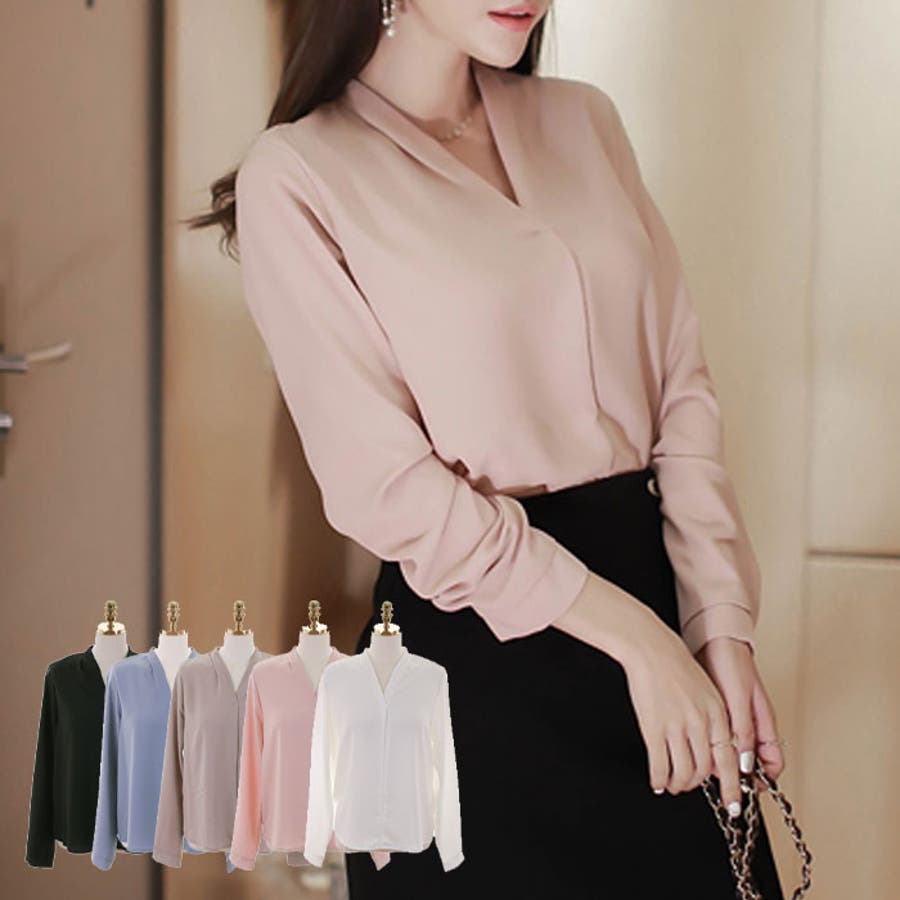 ブラウス レディース vネックブラウス 長袖 レディース ブラウス オフィス ブラウス 長袖ブラウス レディース おしゃれ ブラウス 韓国 ファッション 長袖 ブラウス 黒 bldo1879