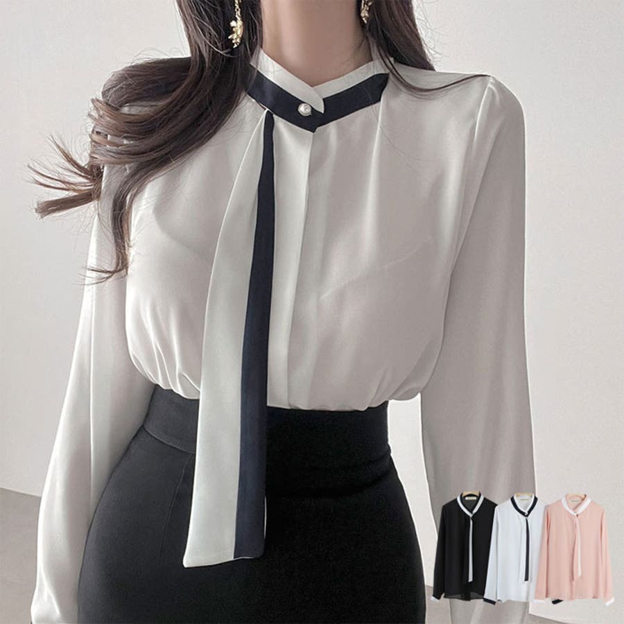韓国 ボウタイ ブラウス 配色 長袖 レディース ボウタイブラウス フォーマル 韓国ファッション ボウタイブラウス ピンク 配色 ブラウス レディース シフォン ブラウス 長袖 オフィス ブラウス 白 レディース 長袖 ボウタイブラウス bldo2746