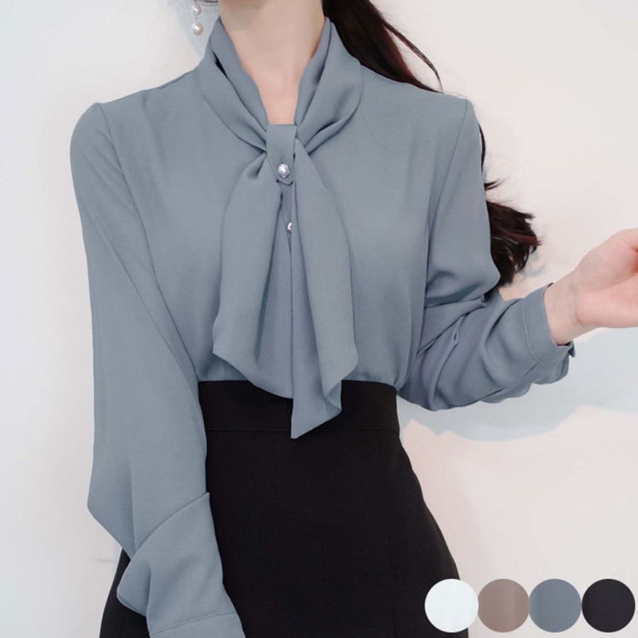 エレガントなスカーフタイブラウス 長袖 レディース タイスカーフ オフィスブラウス 韓国ファッション シフォンブラウス オフィス タイスカーフブラウス 長袖 シンプル 春秋 ブラウス 大人しい きれい デイリー オフィスルック bldo2961