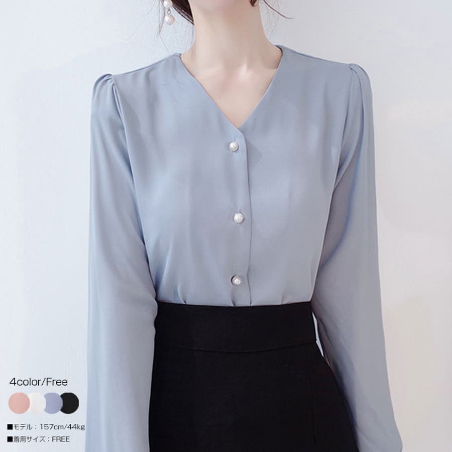 vネックシャツブラウス長袖 全4色 レディース オフィスブラウス 長袖 ブラウス 韓国 オフィスルック シャツ vネック オフィス ブラウス 春夏秋 きれいめ 韓国ファッション 可愛い デイリー通勤通学 カジュアル bldo3084