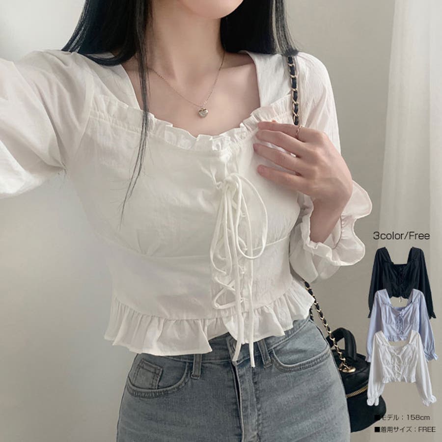 ブラウス レディース 長袖 フリルブラウス レディース おしゃれ 秋 ブラウス レディース 長袖 ブラウス レディース 長袖 韓国 クロップド丈 トップス レディース オフィスカジュアル キャザー入りブラウス 韓国ファッション ブラウス 長袖 レースアップ トップス ブラウス 長袖 デイリー ブラウス レディース 可愛い bldo3175