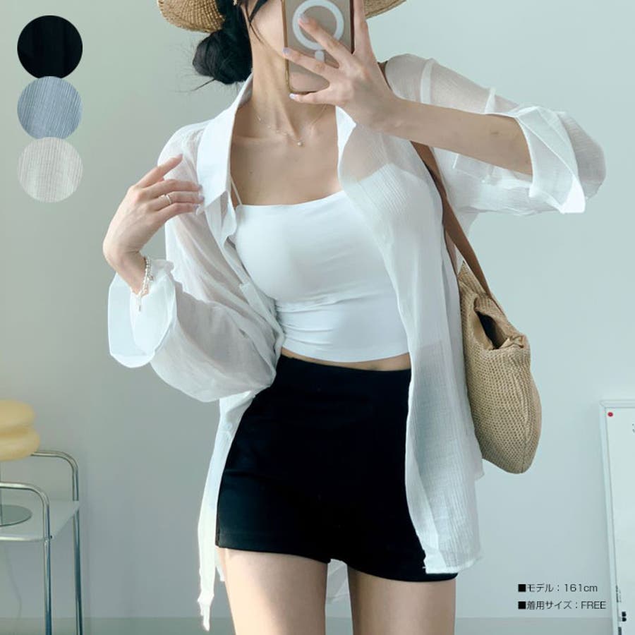 ポケット付きシアーシャツブラウス長袖 レディース シアーシャツ 韓国ファッション 長袖 旅行 リゾート シアーシャツ カジュアル bldo3246