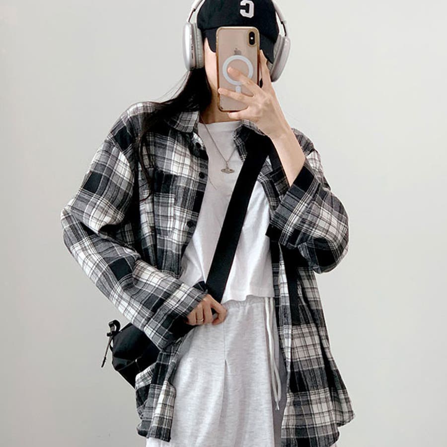 チェックシャツ レディース 長袖シャツ ゆったりシルエット オーバーサイズ カジュアルファッション 秋冬コーデ ストリートスタイル デイリーコーデ チェック柄シャツ トレンドアイテム レイヤードスタイル
