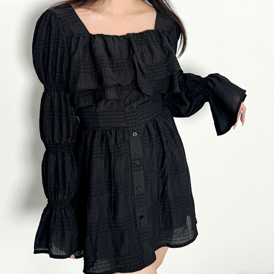 ボリューム感のあるスリーブとネックラインが、絶妙な甘さを引き立てます。