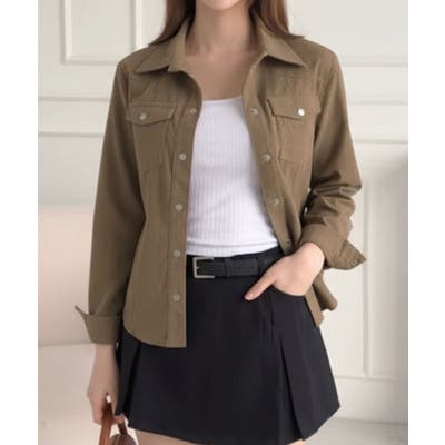 バスト部分のフラップポケットがさりげないアクセントになり、シンプルながらデザイン性のある一枚です。