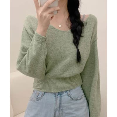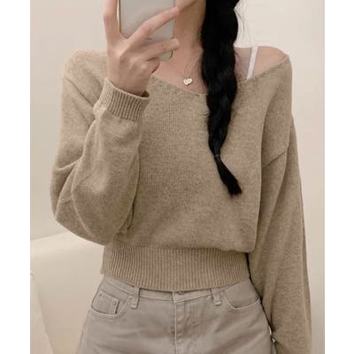 鎖骨が綺麗に見えるVネックで、美しいシルエットが魅力の定番ニット。