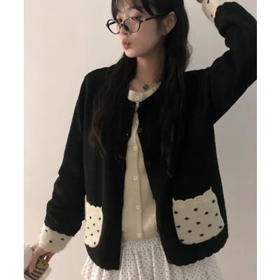 袖口と、スカラップの縁取りがキュートなポケットには、レトロなドット柄を採用し、ガーリーなアクセントをプラス。