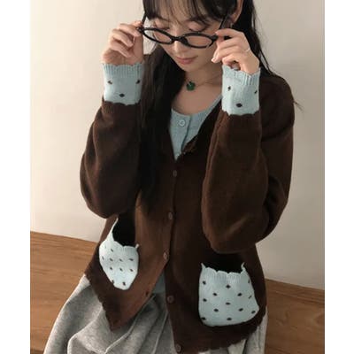 \一枚でお洒落上級者!レイヤード風デザインが可愛いカーディガン/