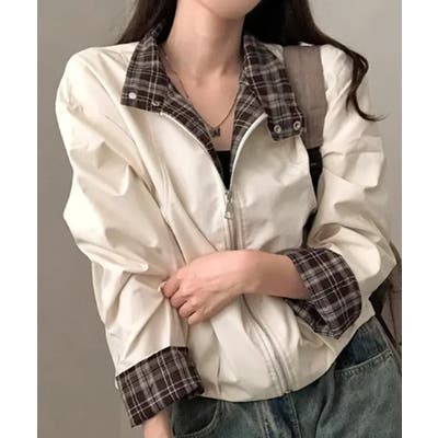カジュアルでありながらも洗練された雰囲気を演出する、チェック柄の裏地付きジップアップジャケットです。