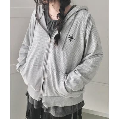 細ボーダーとゆったりシルエットで仕上げた、万能ダブルジップパーカー