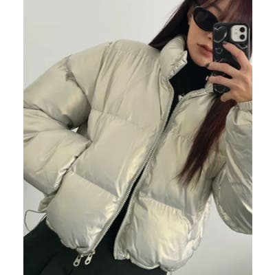着るだけで主役級!トレンドの光沢感クロップドダウン