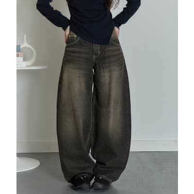 裾に向かって緩やかに細くなるカーブシルエットが特徴のデニムパンツです。