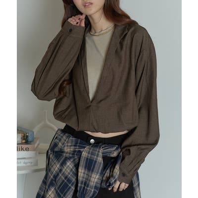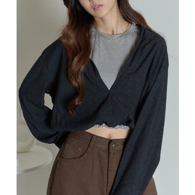 まるでキャミソールやタンクトップを重ね着しているかのような、フェイクレイヤードデザインのクロップドトップス。
