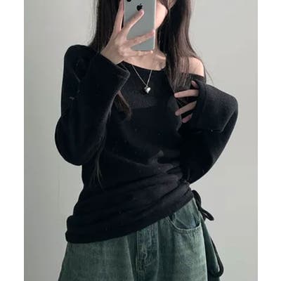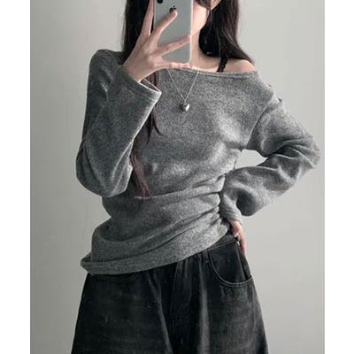 起毛 ボートネック ワンショルダー 2way シャーリングロンT