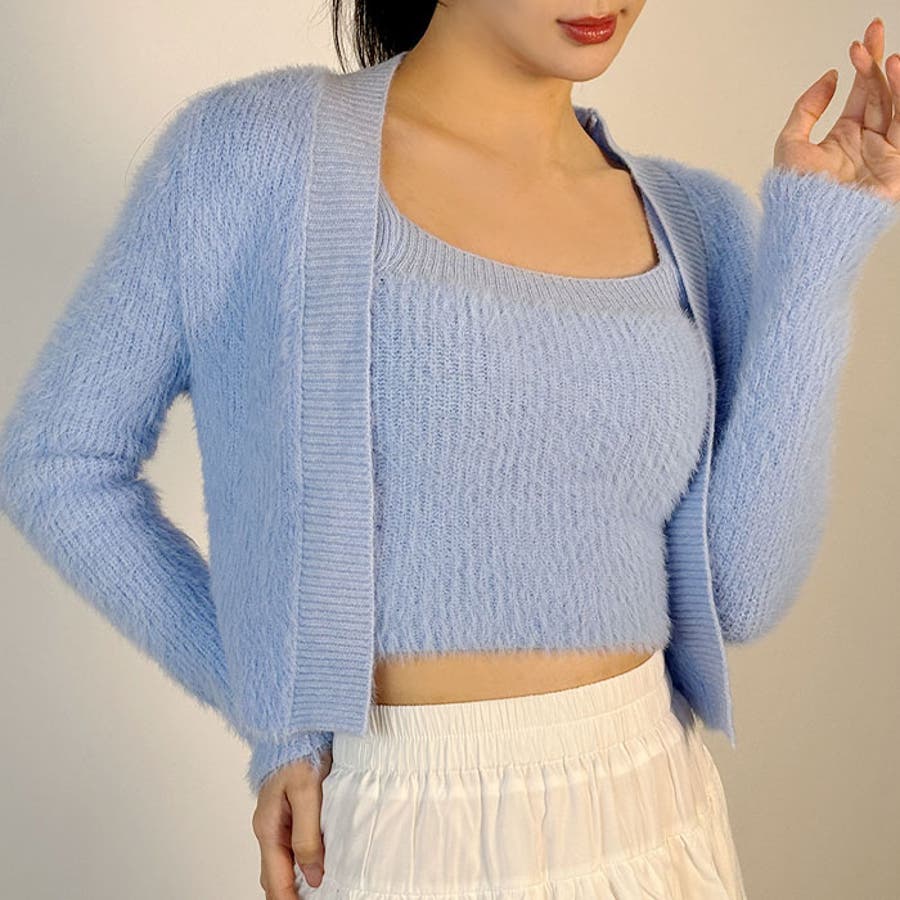 ニットカーディガン キャミ セット 2点セット 韓国ファッション カーディガン キャミソール ニット ショット丈 ショート セーター レディース キャミカーデセット ニットカーディガン 着痩せ きれいめ ニットソー ニットトップス トップス セットアップ 大人カジュアル 韓国