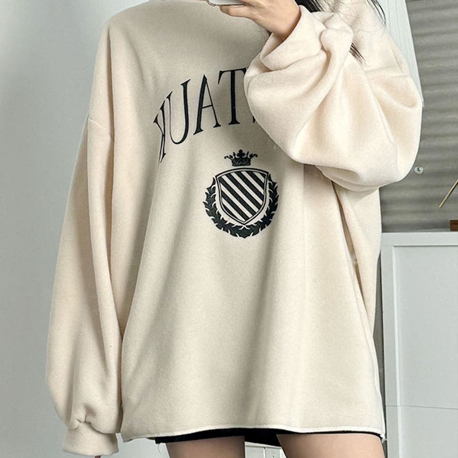 裏起毛 長袖 トップス ロングカットソー オーバーサイズ 韓国ファッション ロンT レディース スウェット 首元広め ロングTシャツ ロンティー ゆったり トレーナー カジュアル ルームウエア かわいい長袖 ラウンドネック あったか 体型カバー 秋 冬 韓国