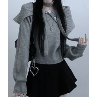 \一枚で旬顔コーデが完成!デザイン性豊かなビッグカラー&チョーカーがポイントのショート丈ニット/