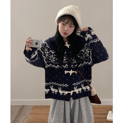 \レトロ可愛い!冬ムード満点のノルディック柄ニットカーデ/