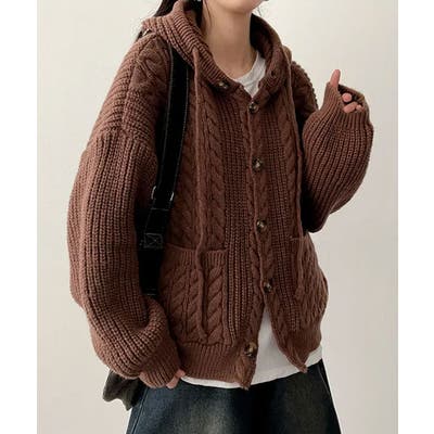 \秋冬コーデの主役に!ざっくりケーブル編み&フード付きの優秀ニットカーデ/