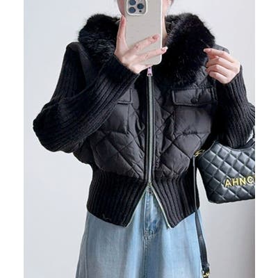 \主役級のデザイン!ファー×ニットスリーブの異素材ミックスアウター/