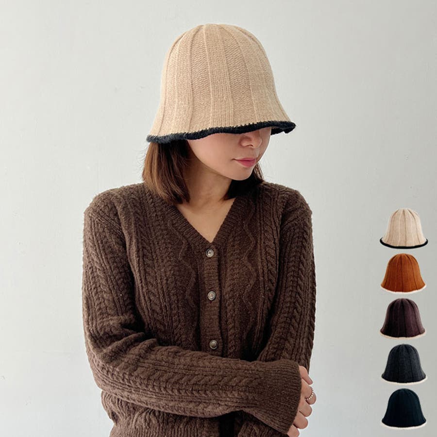 ツートンウールリブニットバケットハット 全5色 帽子
