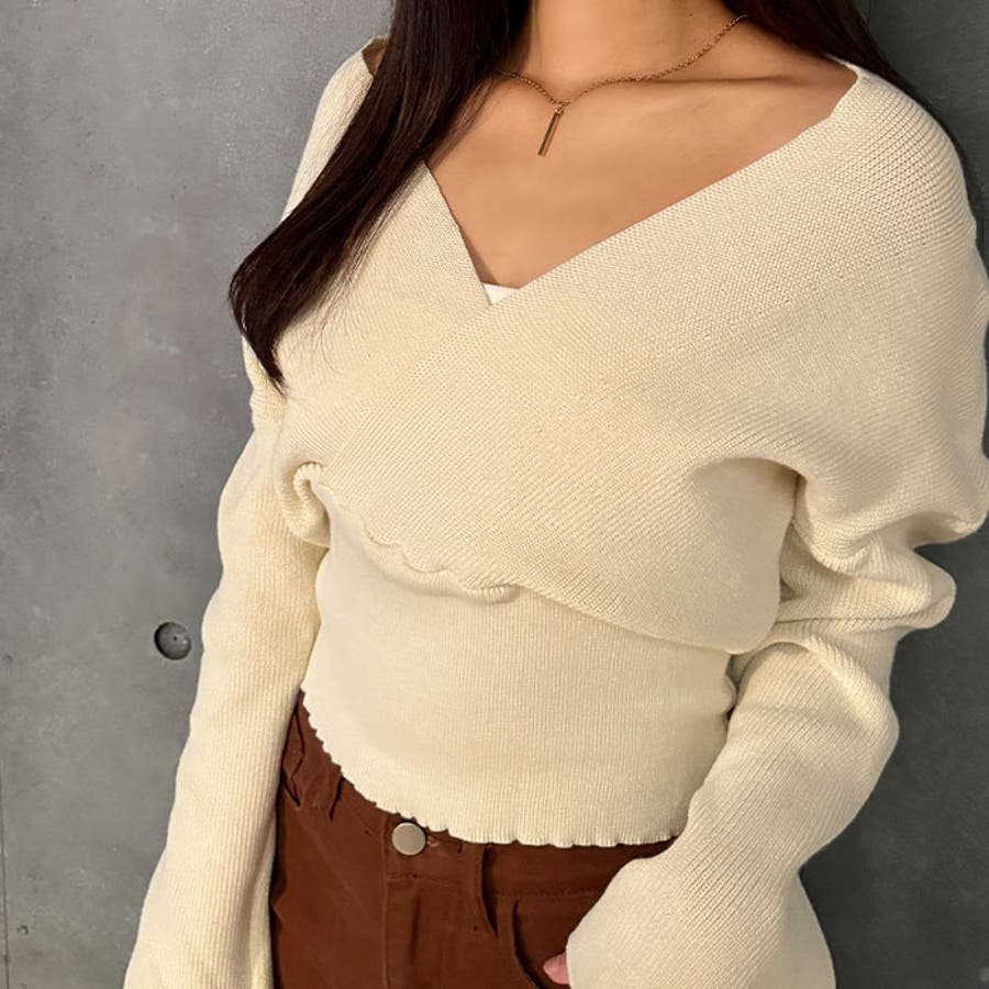 【ブラック】素敵なラップデザインのラップニット レディース リブ