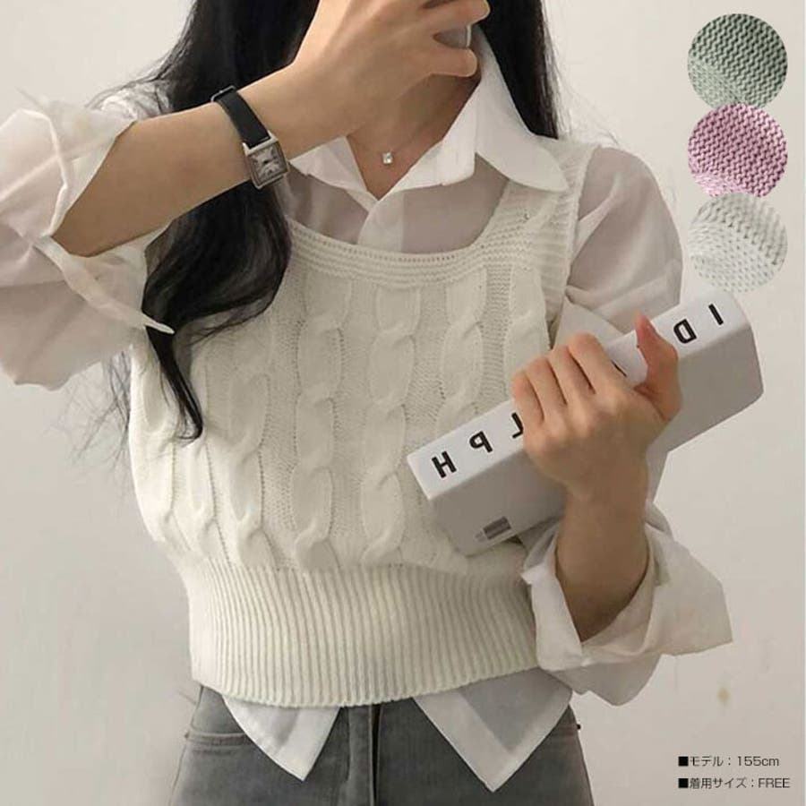 クロップド丈ケーブル柄ニットベストレディース 春ニット クロップド丈 ニットベスト ニット レディース 可愛い ケーブル柄 春 ニットT レディース かわいい 大人 ニットベスト カジュアルニット 長袖 春 韓国 可愛い トップス ニット かわいい 韓国ファッション kndo1144