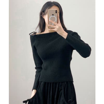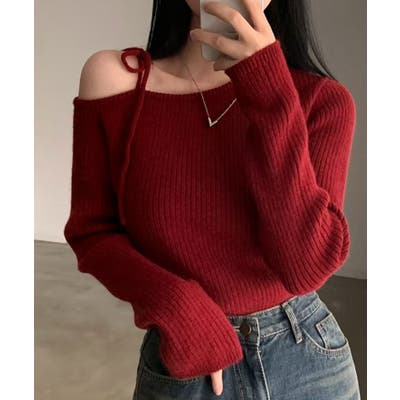 肩開きリボンニット★適度な肌見せで女性らしい印象に。