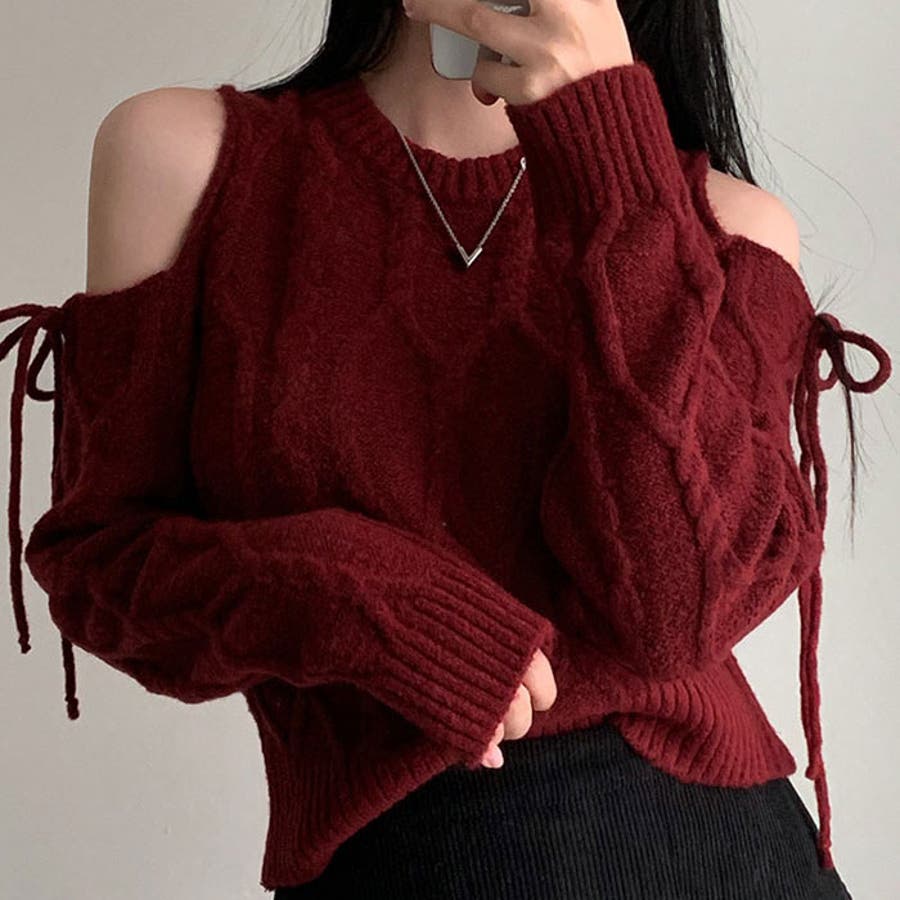 肩開きリボンニット レディース 秋