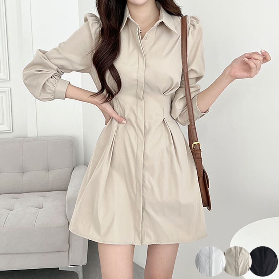 ピンタックシャツワンピース ショート丈 長袖 デイリー ウエストラインピンタック 韓国 ミニワンピース レディース 春 ショート丈 長袖 シャツワンピース 長袖 デイリーワンピース 韓国ファッション 春 ワンピース ウエストゴム opdo1208