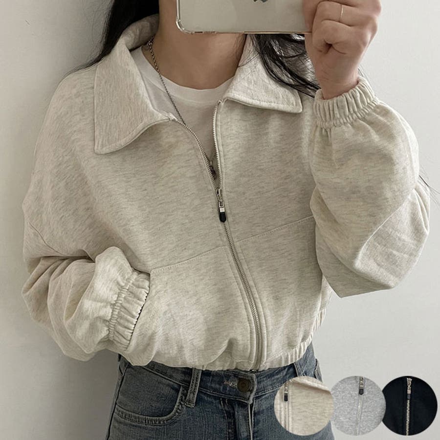 クロップド丈襟付きジップアップトレーナー レディース 春先行