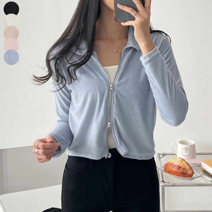 襟付きジップアップジャケット 全5色 レディース Y2K 薄い ジャケット ショート丈 可愛い アウター 韓国 秋冬 スタイリッシュ トップス デイリー ホームウェア 襟付き ジップアップ スウェット ショート丈 スウェットカットソー oudo1213