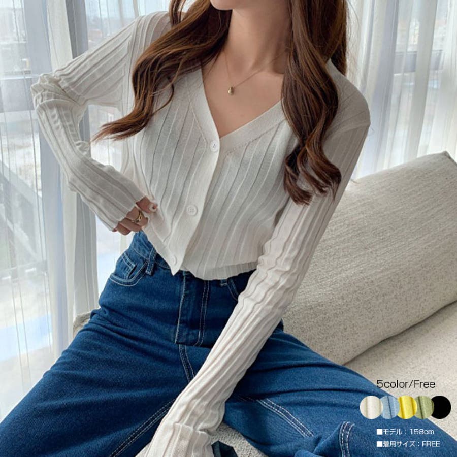 クロップドリブカーディガン長袖 Y2K 全5色