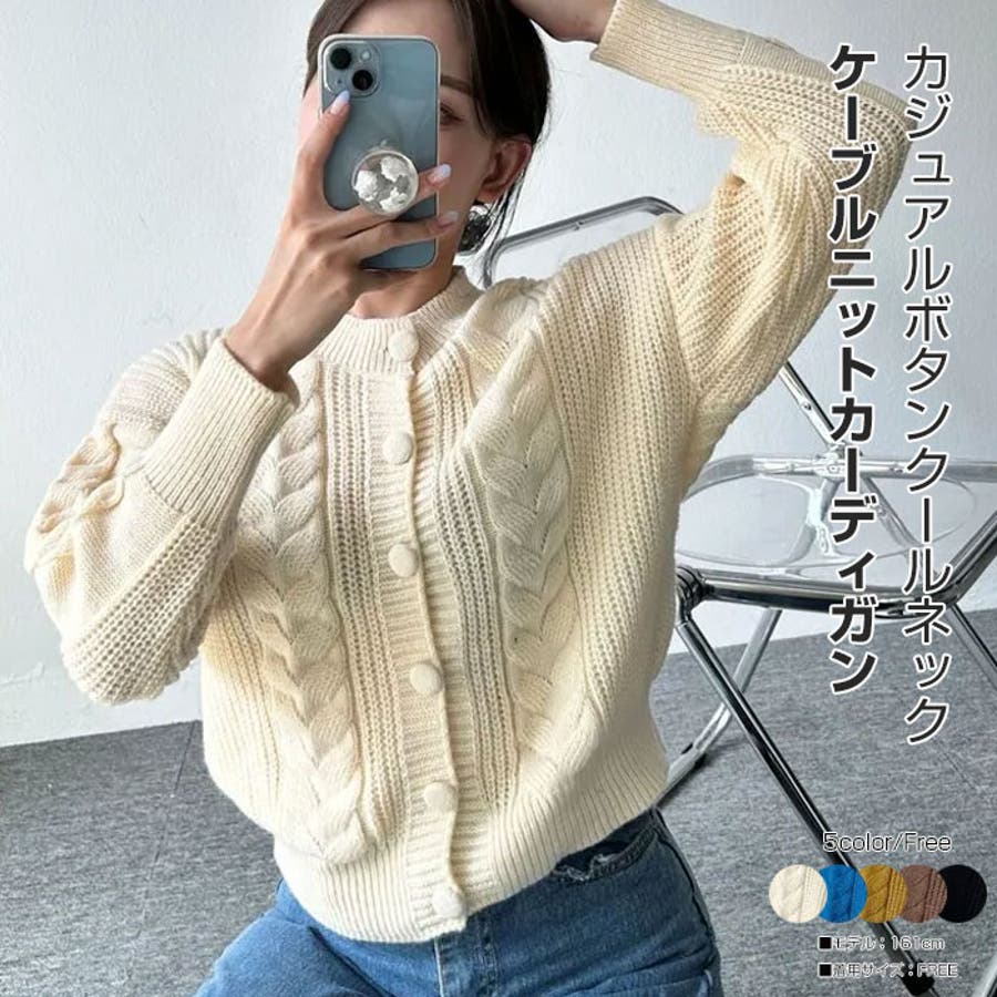 カジュアルボタンケーブルニットカーディガン レディース 長袖 秋 ショート丈 ニット カーディガン レディース カジュアル 秋 長袖 ざっくり編みニット カーディガン レディース 黒 長袖 ケーブルニット アウターレディース 韓国ファッション 秋 レディース ざっくり編みニット カーディガン oudo1359